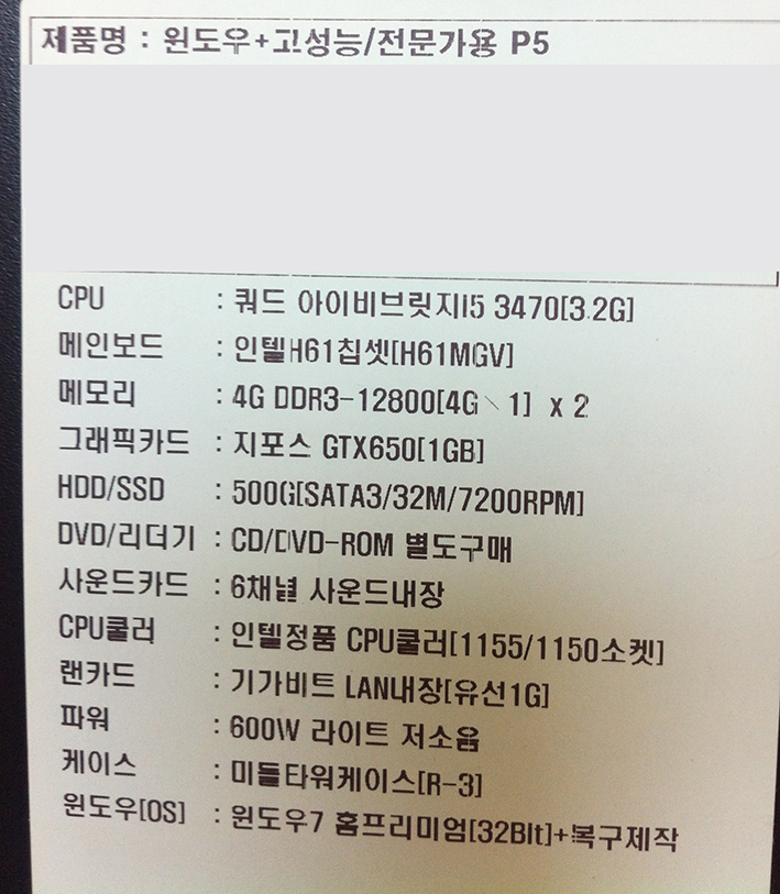 작년 11월에 회사서 업무용으로 새로 구입했었구요.. 조립컴터이고..