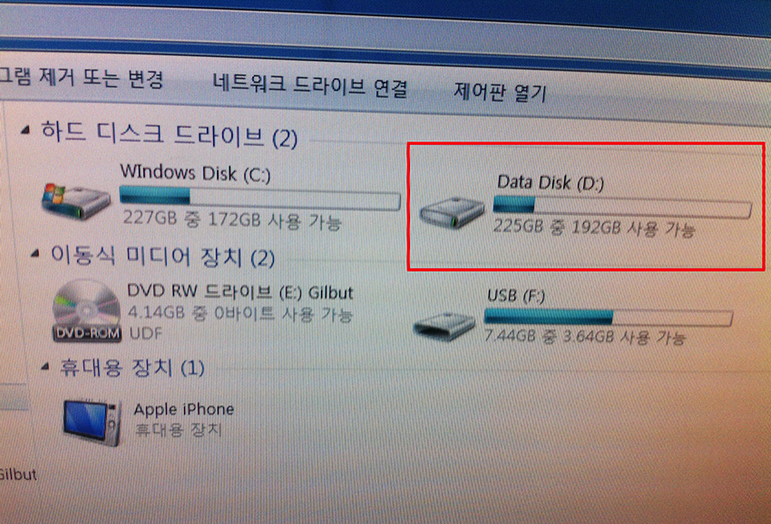 프로그램 파일들은 C드라이브에 다 깔아놓고.. 평소 작업물 데이타(파일) 저장은 D드라이브에 하구요..