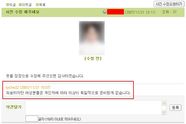 어느 통통한 여자분이 올리신 글인것 같은데, 수정작업 하시던 분이