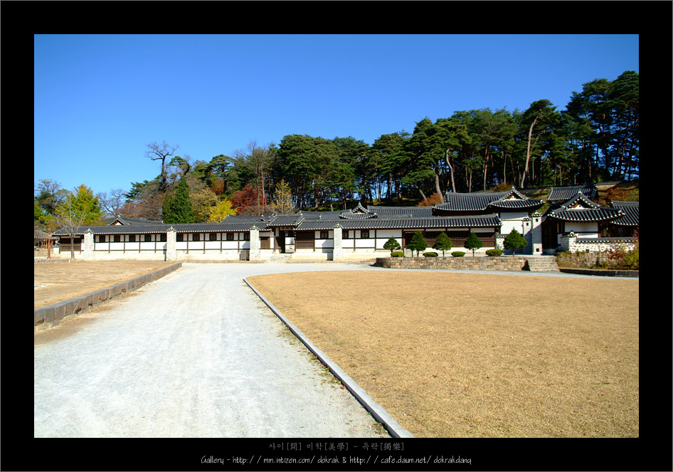 이곳은 "이내번" 으로 부터 조선후기까지 200년간 조금씩 확장되어 오늘의 규모에 이르르고 있습니다. 저택의 초입에는 커다른 방지를 파고 "활래정" 이라는 정자를 지어 손님을 맞이 하였으며 지루하리 만큼 긴 행랑체가 담장의 역할을 같이 합니다.