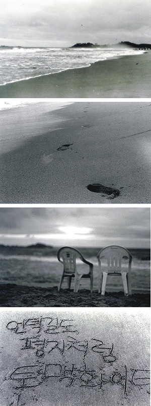 해변에서.