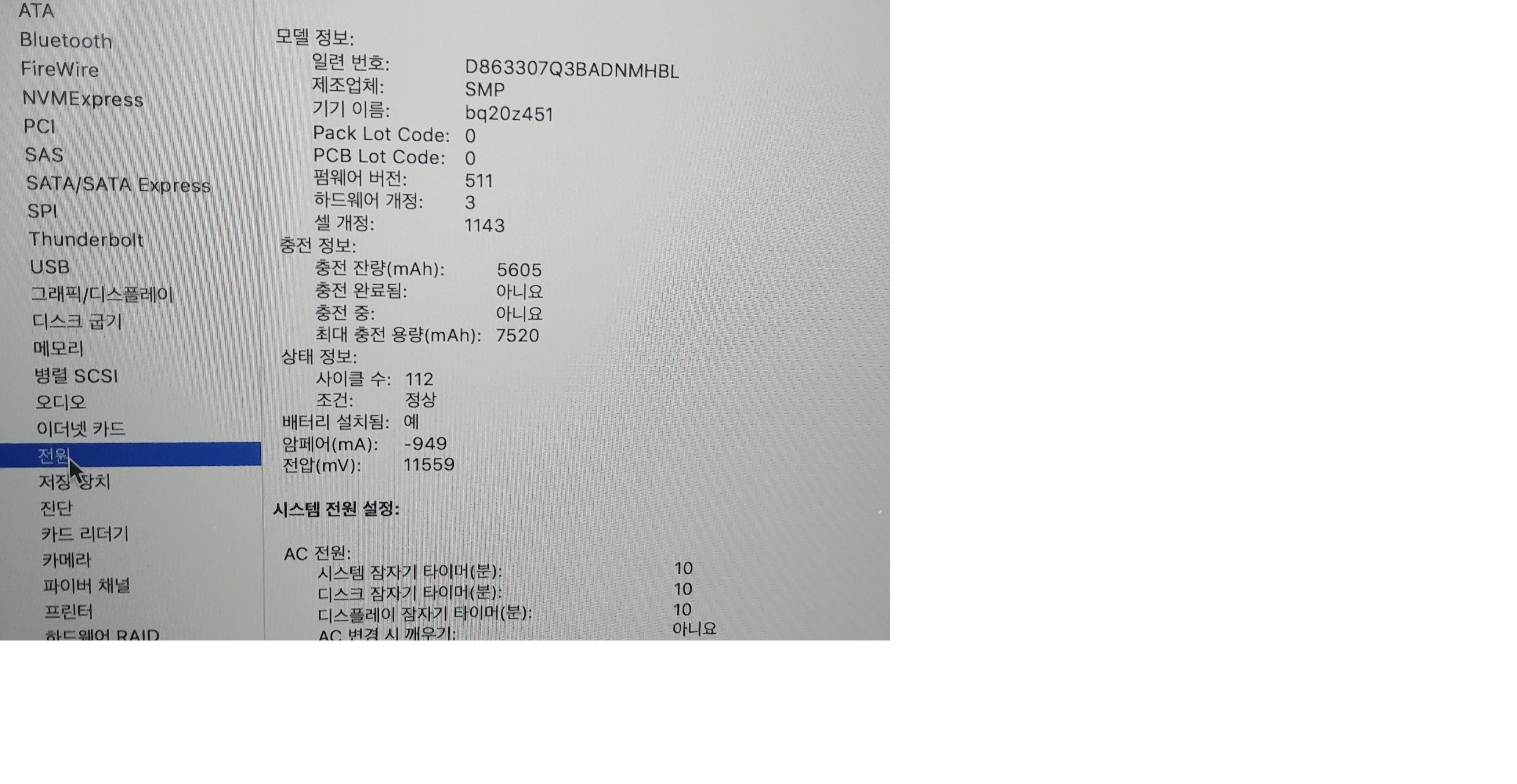 사이클 수 112 최대충전용량 7520