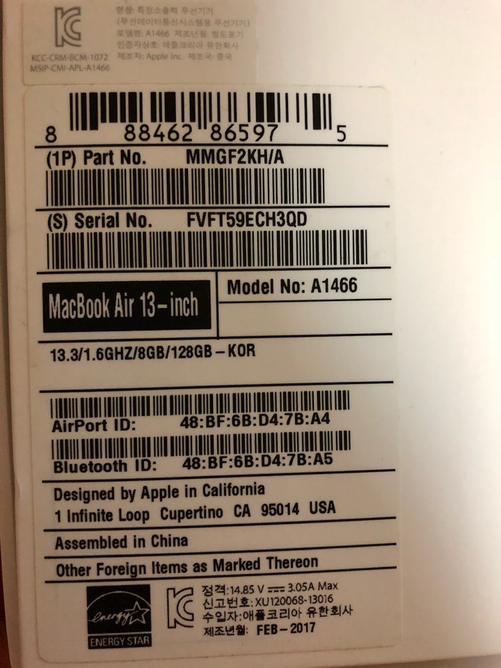 MacBook Air 맥북에어 (MMGF2KH/A) 노트북(i5-33cm) 판매합니다.