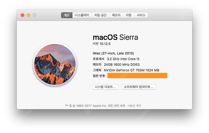 제품 사양: CPU: 3.2 GHz Intel Core i5 / RAM: 24GB 1600 MHz DDR3 / SSD용량: 1TB SATA