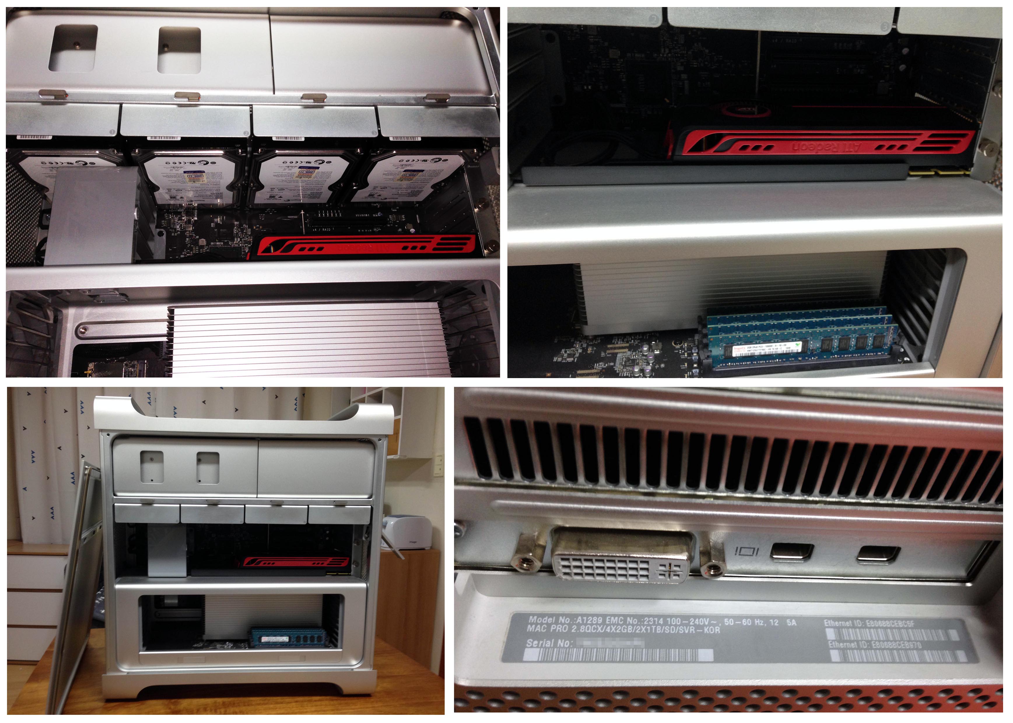 3.HDD - 1.5테라X4 총 6테라 (학원에서 서버로 사용하려고 애코에서 Mac Pro구입 후 업글했습니다. 하드4개 모두 상태 양호합니다.)