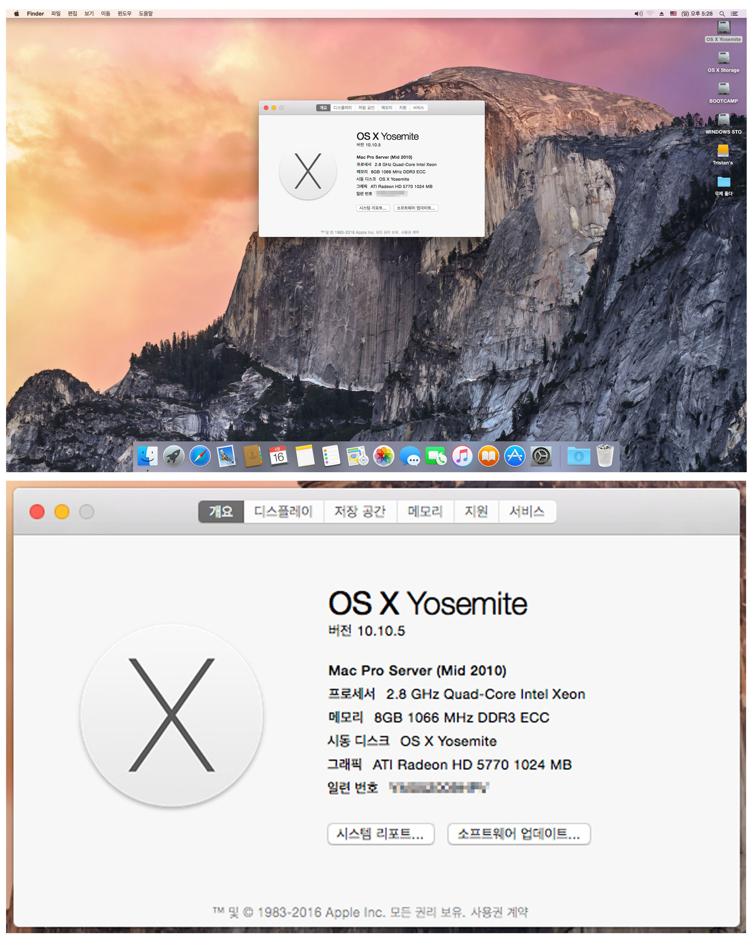 현재 맥OSX요세미티와 윈도우즈7 64bit부트캠프가 설치되어 있습니다.