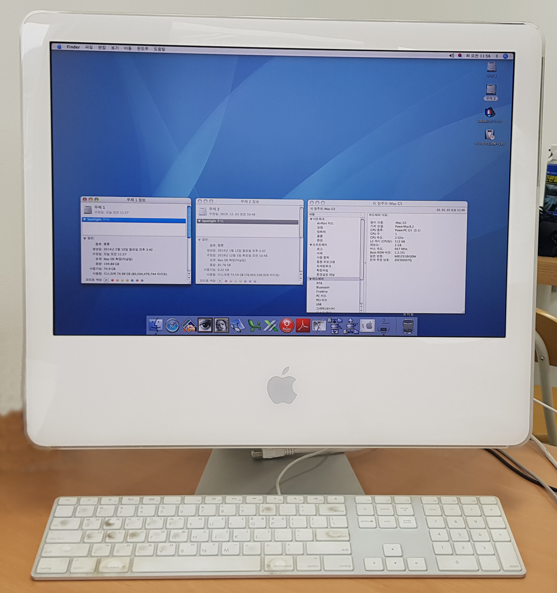 메모리(2기가), 하드(230기가) 일체형 아이맥G5(20인치)입니다,