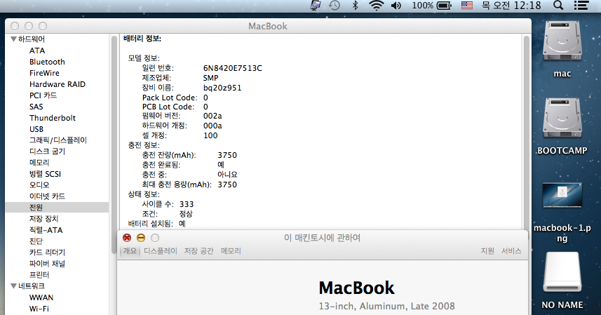 윈도우7과 맥프로그램들 잘 깔린 맥북 13인치입니다