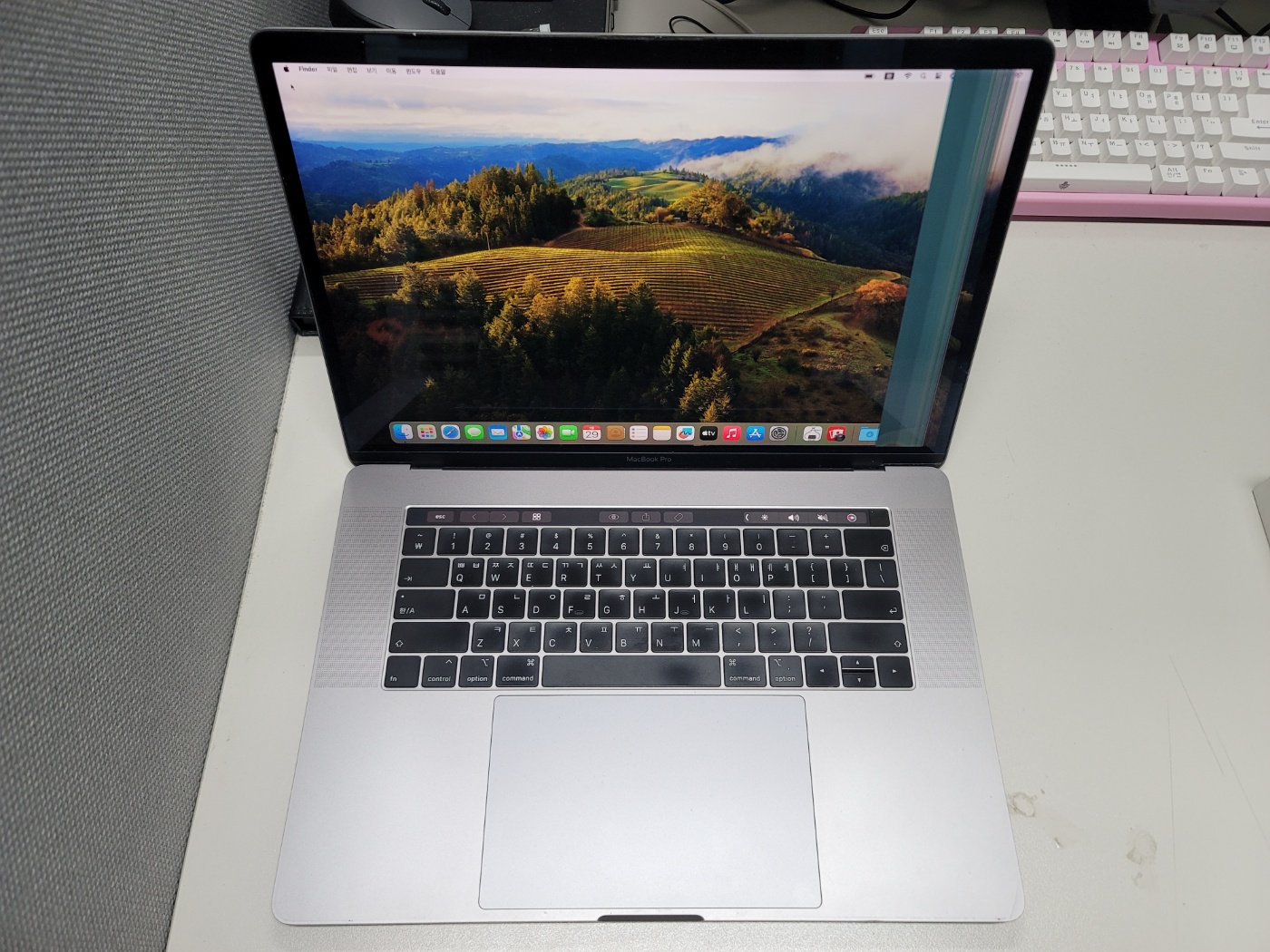 인텔 i7 2.2G CPU / 16G 메모리 / 250G SSD / 라데온프로 555X 그래픽 / 15인치 모델로 외형 상태 괜찮고 배터리 사이클 1113회 입니다. 사진과 같이 화면 오른쪽으로 세로줄이 있습니다. 구성품은 맥북프로 본체하고 충전기(엘지 65W제품) 입니다. 충전기 필요 없으시면 2만원 빼 드립니다.