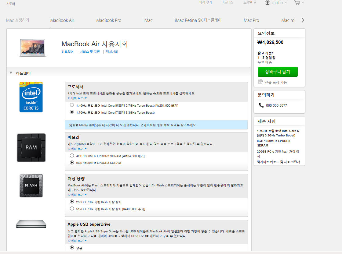 맥북에어 13인치 [스펙업] 팝니다.