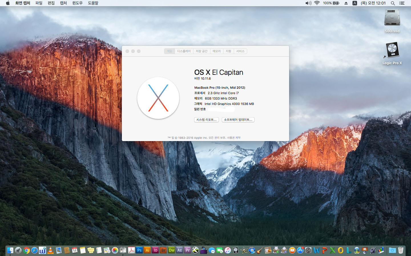 파이널컷 로직프로 깔린 맥북프로 15인치 2012년식 고사양
