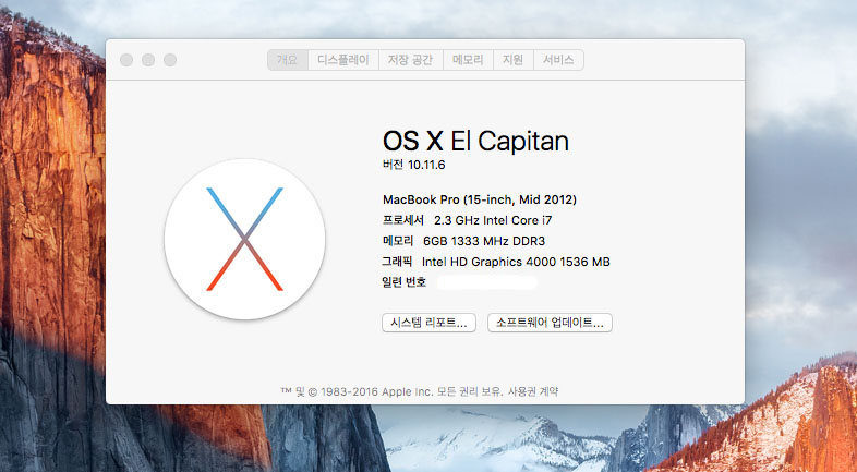 2012 맥북프로 15인치 입니다.