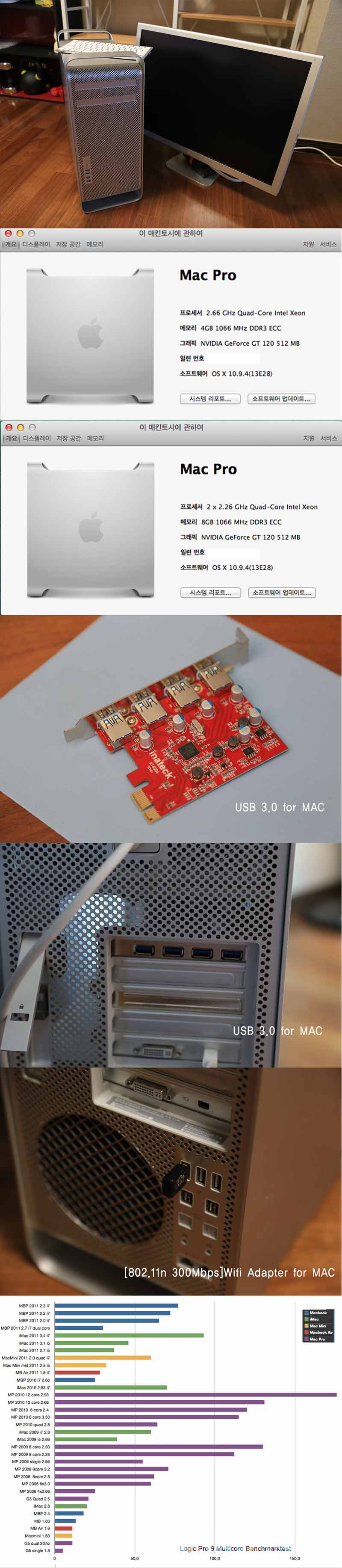 옵션들 모두 맥프로 전용으로 해외에서 구매 장착한 것입니다.