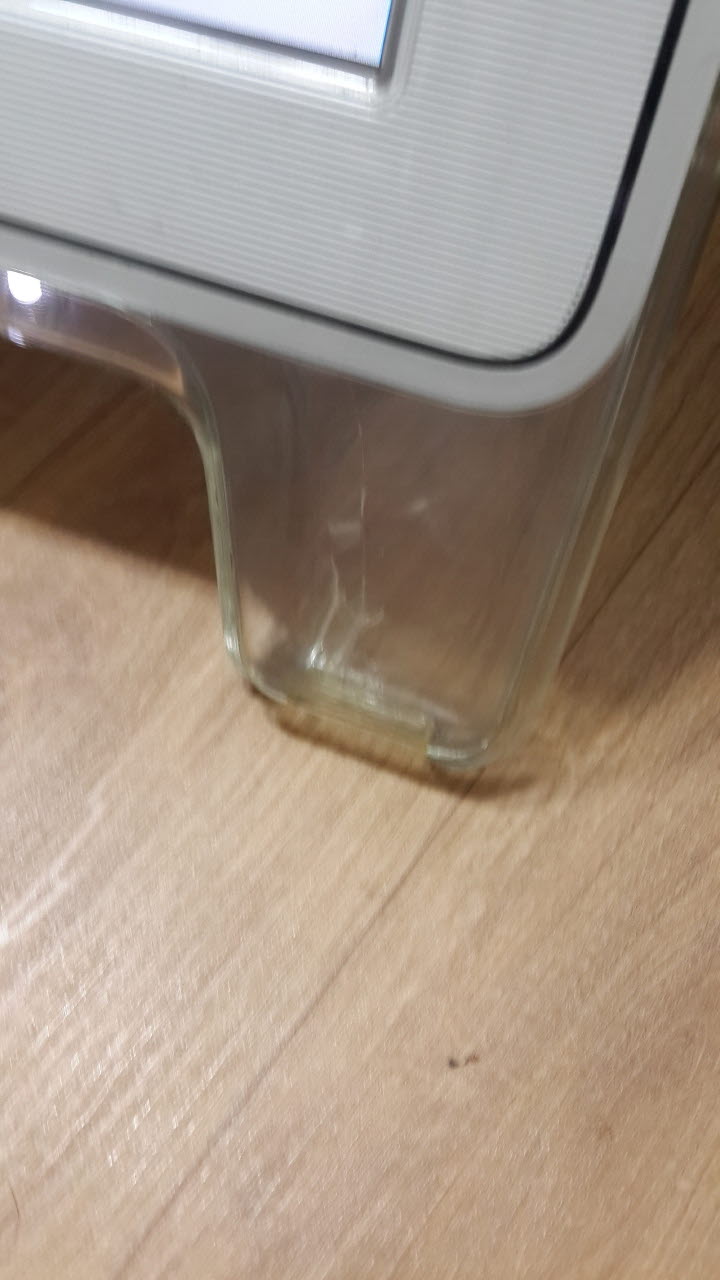 모니터 구동에는 이상이 없지만 오른쪽 하단 살짝 금가 있습니다(사진참조)