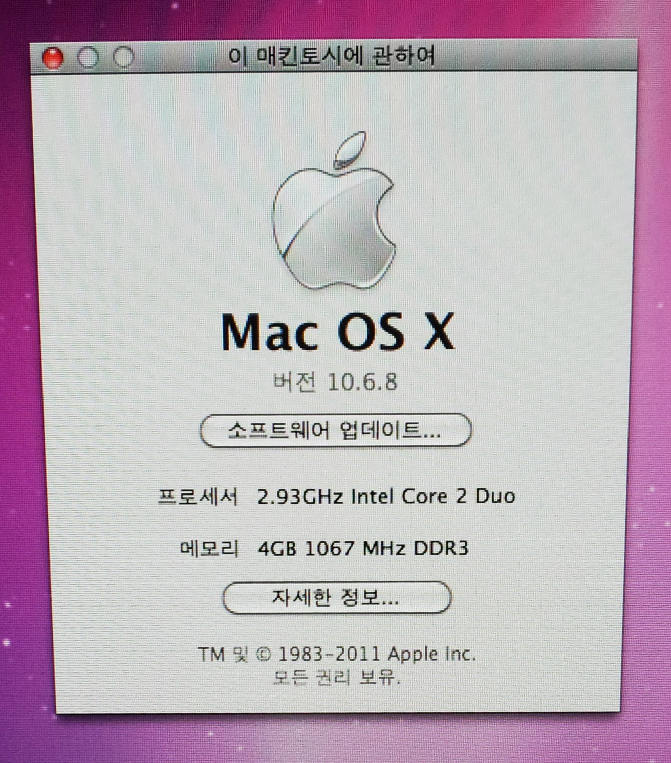 iMac 24형 : 2.93GHz (Intel 코어 2듀우) 4GB 메모리, 640GB 하드