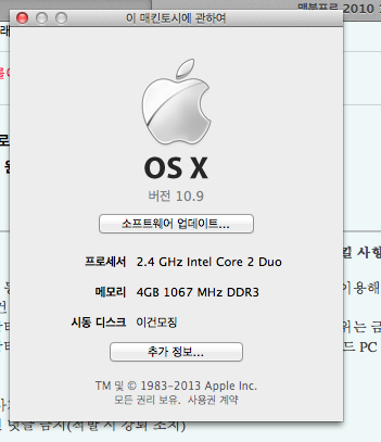 최신소프트웨어 업데이트했습니다.(OS X 매버릭스)