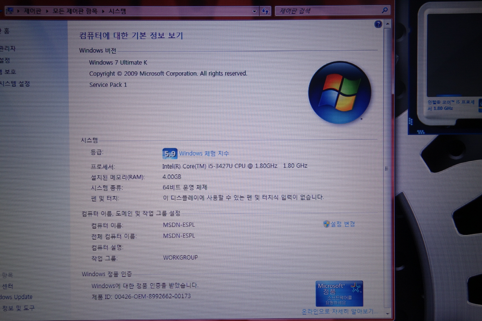 -윈도우 정품인증 인증샷입니다.