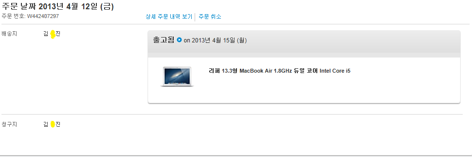 맥북에어 13인치 S급 2012년형 -상세사진- 풀박스 3개월사용 인증샷
