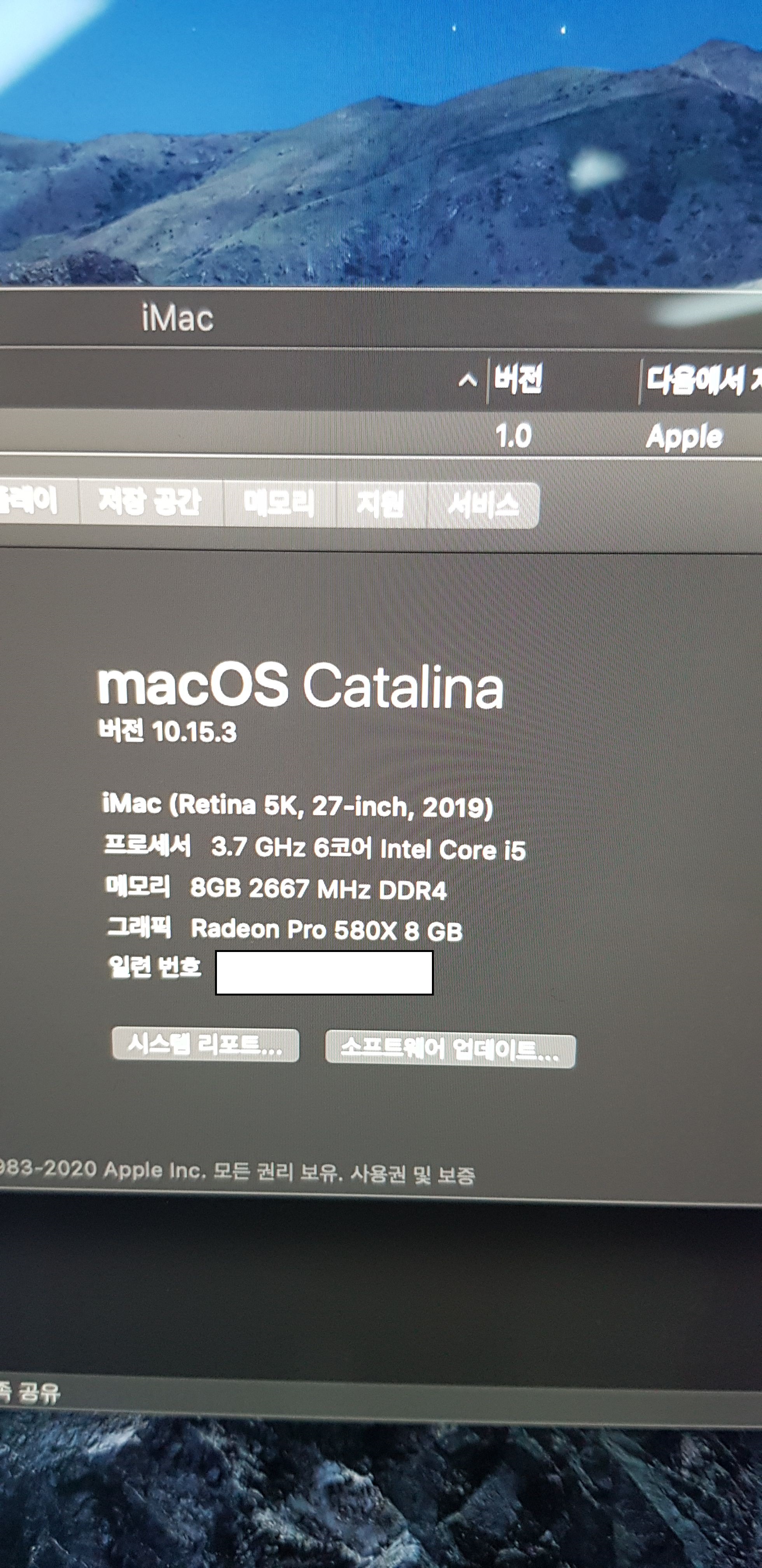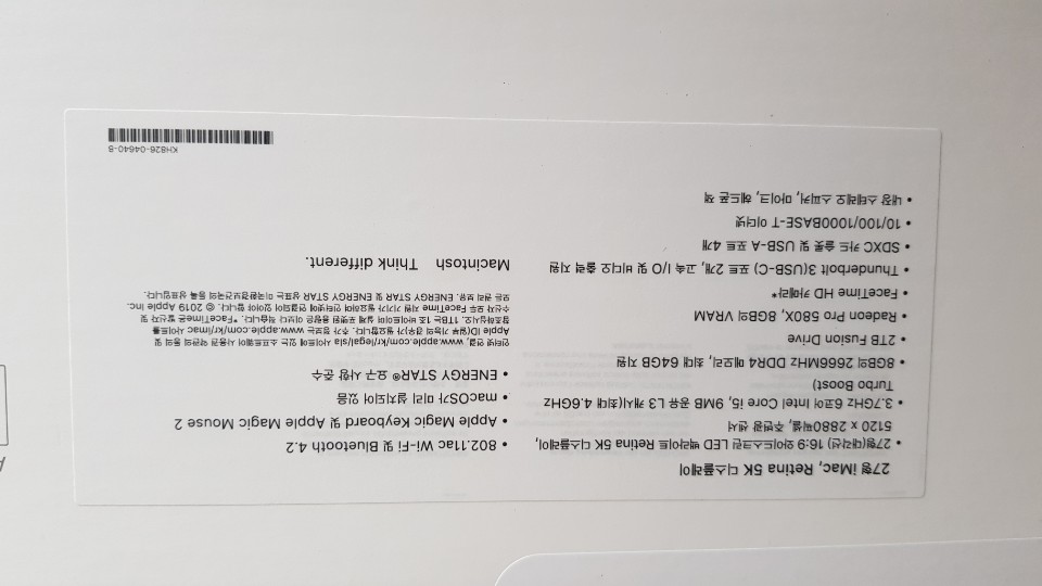 27형 2019 New iMac Retina 5k 3.7GHz 6코어 Intel Core i5 판매합니다.