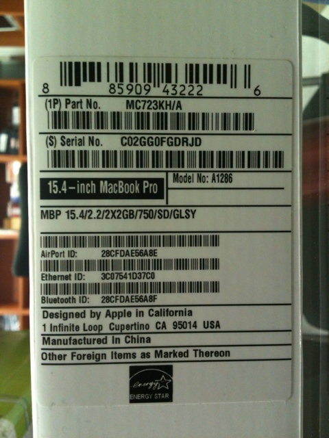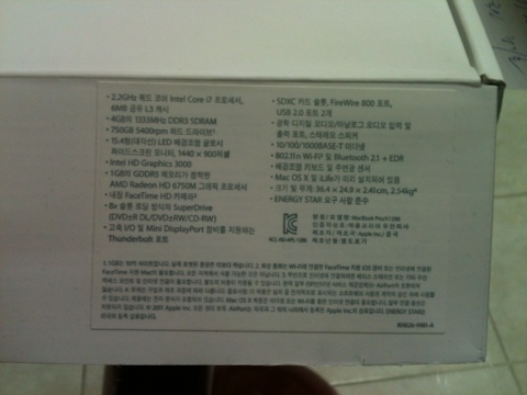 MacBook Pro 15형MC723KH/A(i7-2720QM-2.2/4G/750G/라데온HD6750-1G)박스개봉품