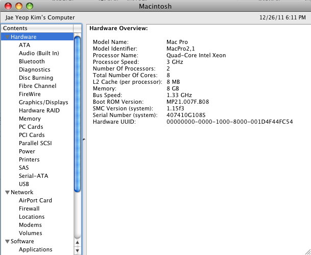 CPU: 3.0 GHz Quad-core Intel Xeon x 2