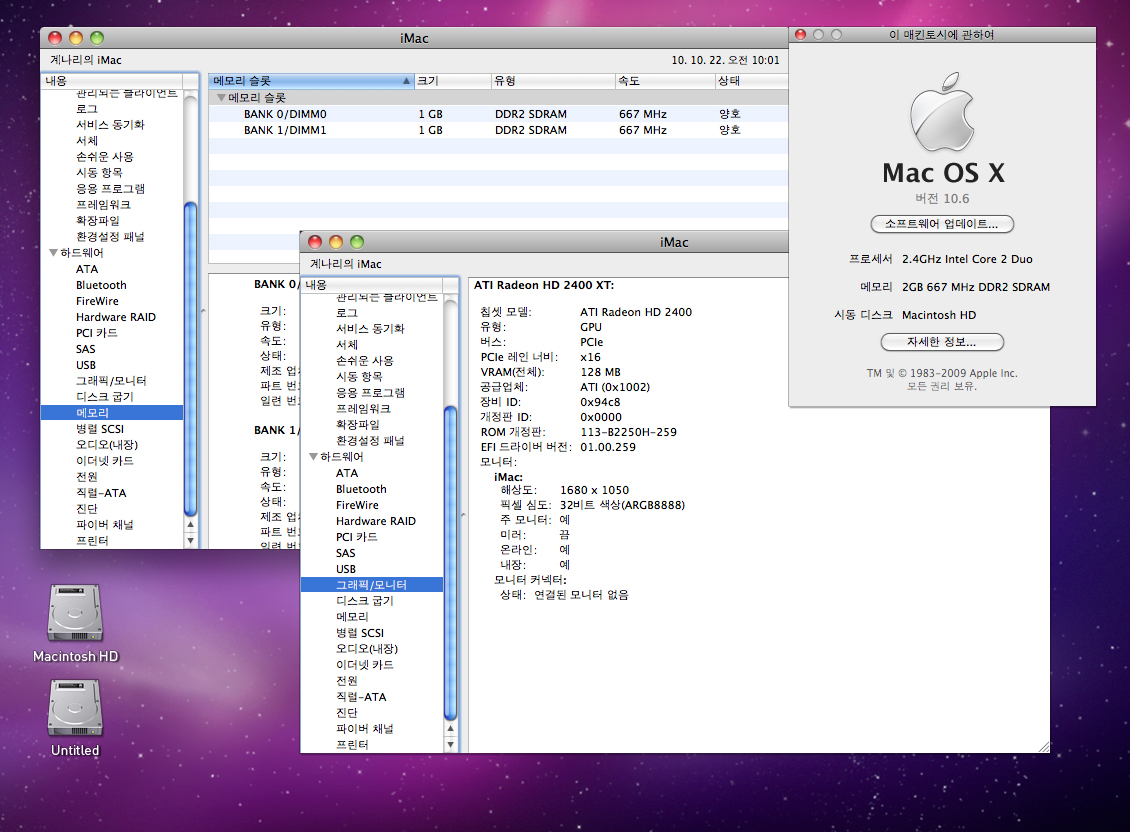 알리미늄바디 아이맥 2.4GHz ,2 GB 팝니다