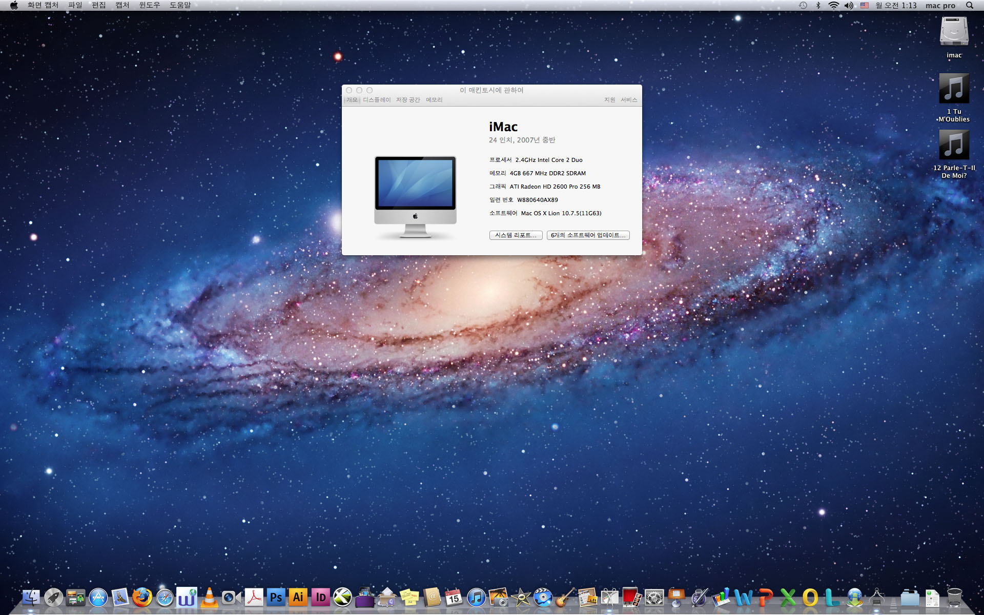 맥os 라이언과 프로그램까지 다 설치되어있는 상태최상인 아이맥입니다
