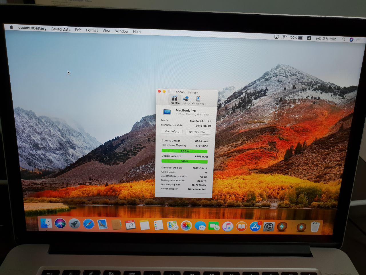 3년 썼더니 사이클수가 높아 팔기전에 수리 받았습니다. 배터리는 새거로 현재 사이클수는 0입니다.