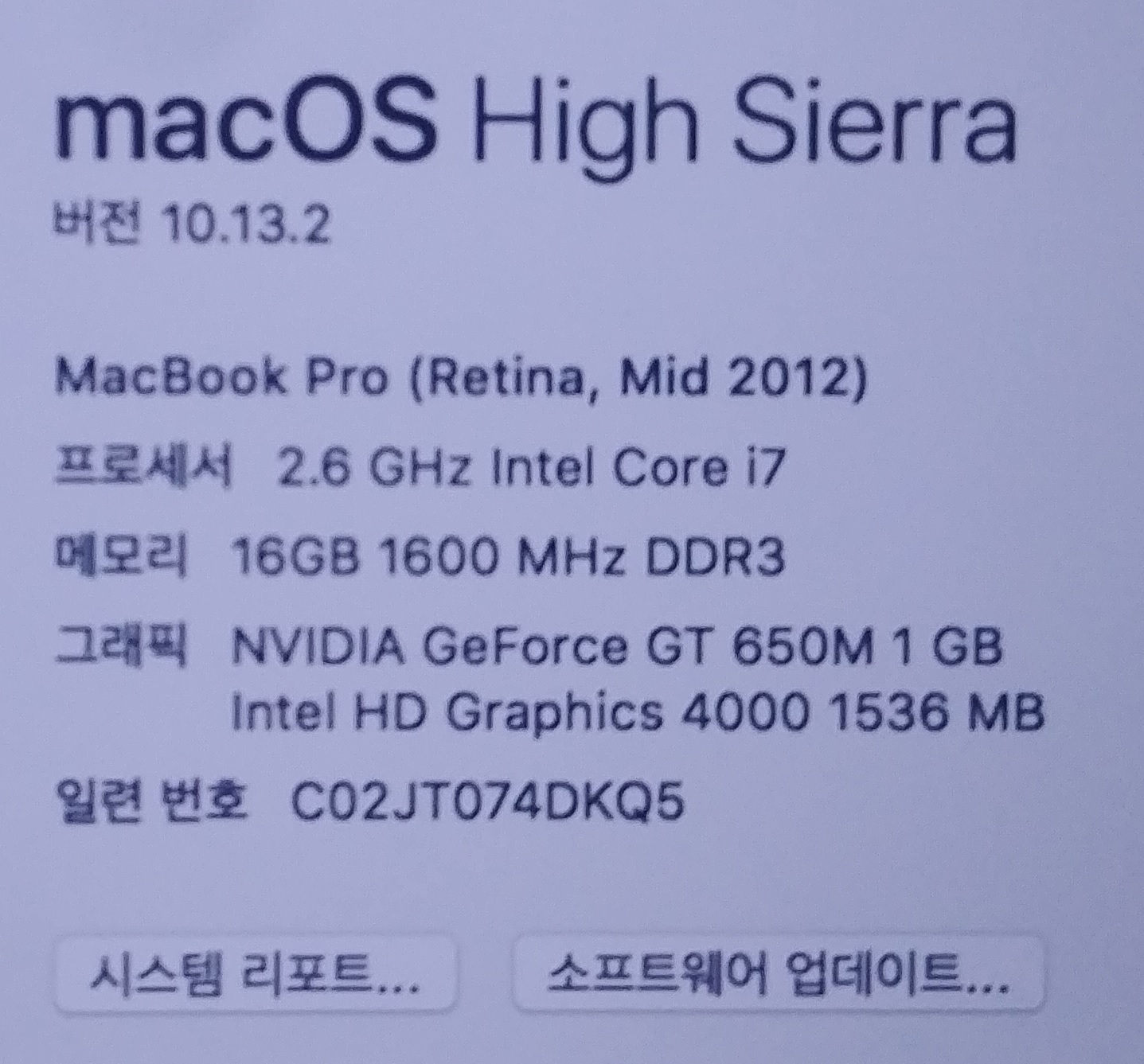 맥북프로 Retina 15인치 i7 ram16 ssd512 GT650 팜