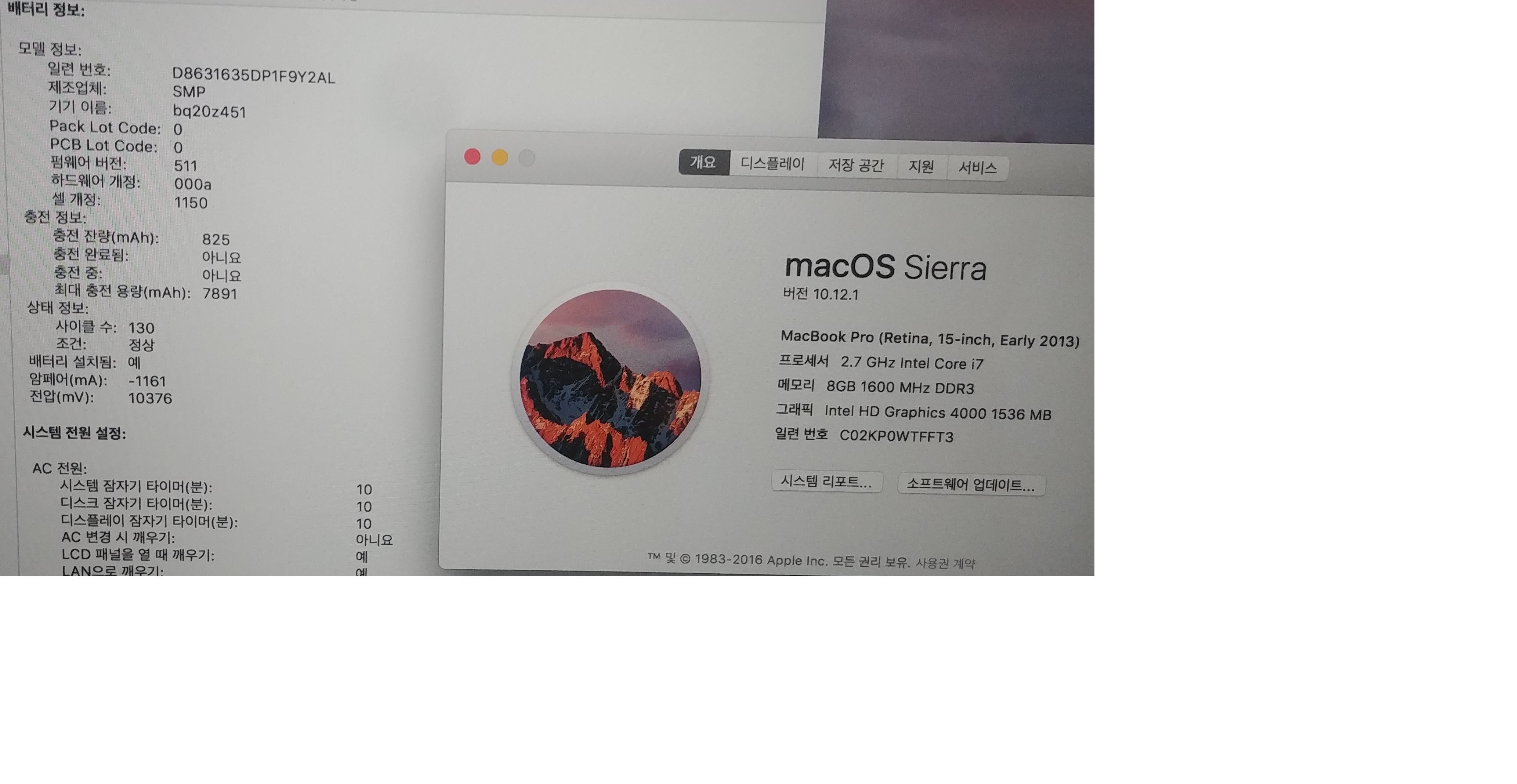 배터리 사이클 130 최대충전용량 7800