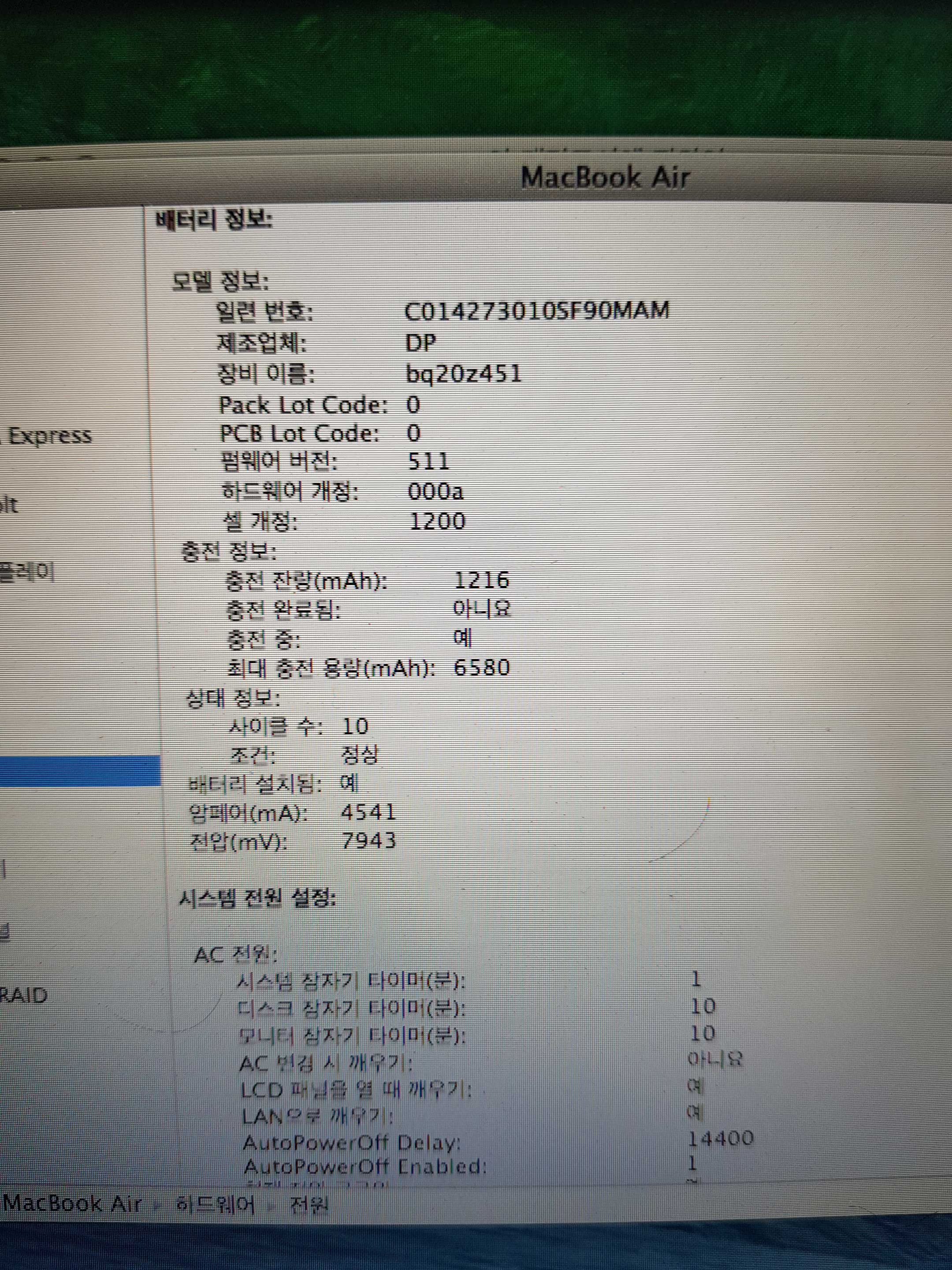 사진에서 보시다시피 배터리 사이클 10회입니다.