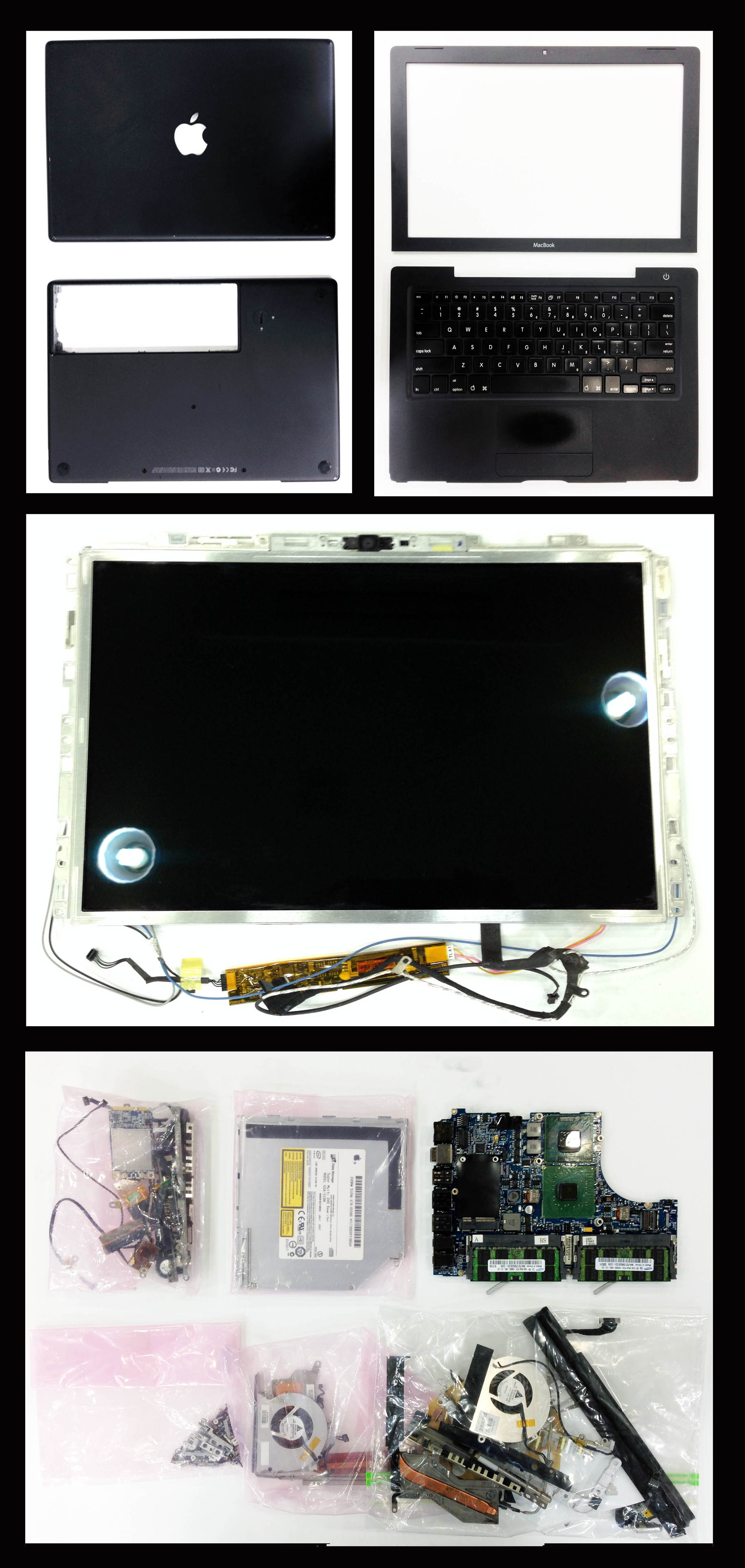 맥북 내용물은 완전 분해하여 비닐로 사진에서 보시는것과 같이 모두 포장하였습니다