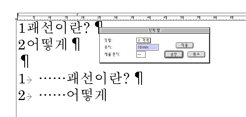 3. 중간 채울문자 option + 0106(…) 또는 .......로 채워주면 됨