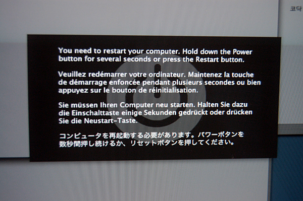 요즘 제 맥에서 사진과 같이 회색커튼이 쫘~악하고 내려오면서 Restart하라는 메시지가 자꾸 뜹니다. 이유가 뭔지 모르겠습니다. 또 한가지 다른 점이 있다면 파이어폭스나 사파리가 비정상으로 자꾸 종료된다는 것...