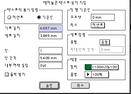'매어놓은 텍스트 상자 지정'에 보면 '텍스트와 동시정렬' 보이시죠??