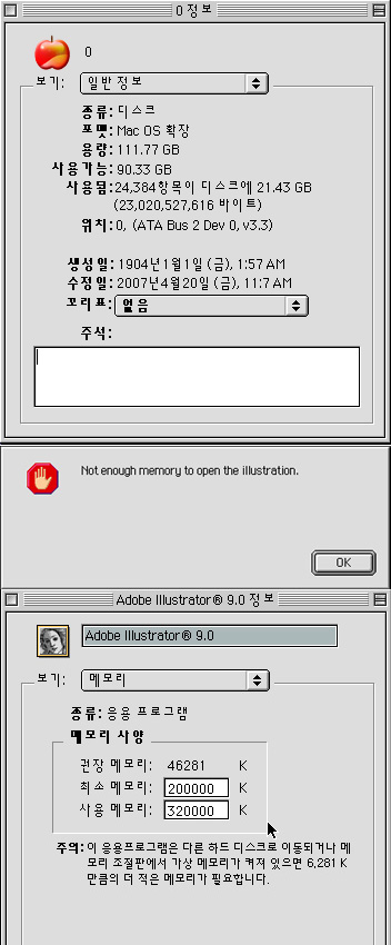 조절판>메모리에서 가상메모리를 켜보세요..혹시;;