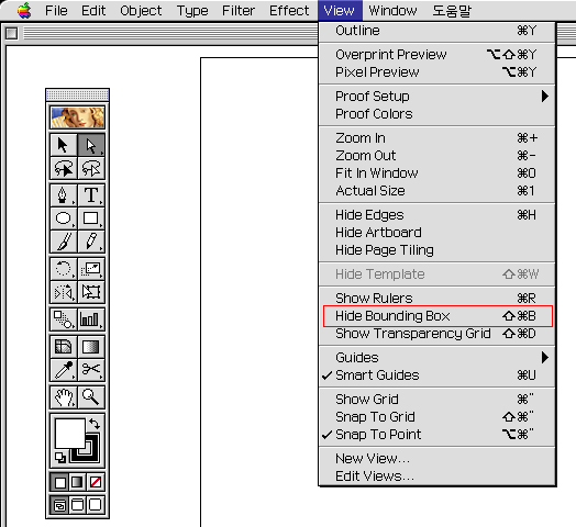Bounding box라는 기능이 꺼져서 그렇습니다.