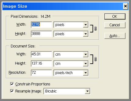 반드시 이미지 사이즈에서 resample image 체크 푸시고 200으로 바꿔보세요.