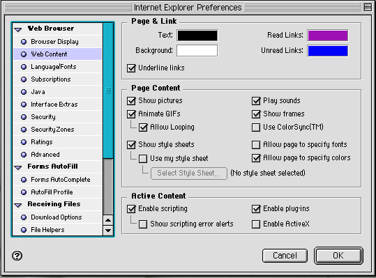 그림에서처럼 Exploer-Edit-Preferences-Web Content