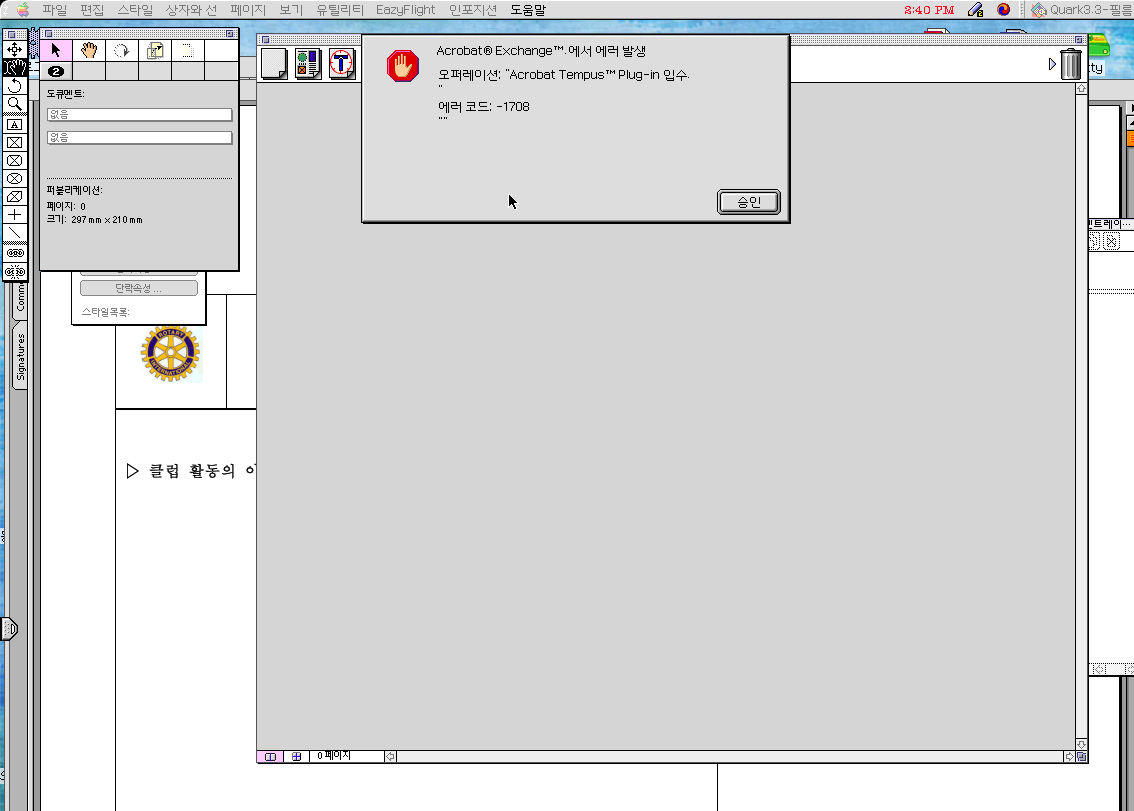 Acrobat Exchange에서 에러 발생