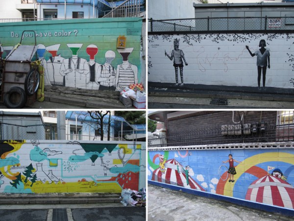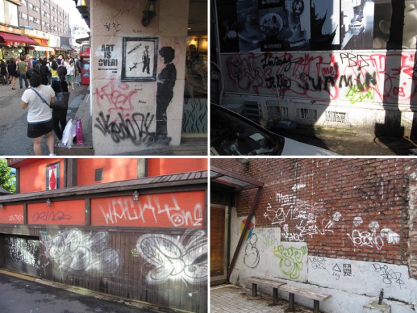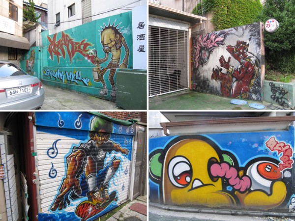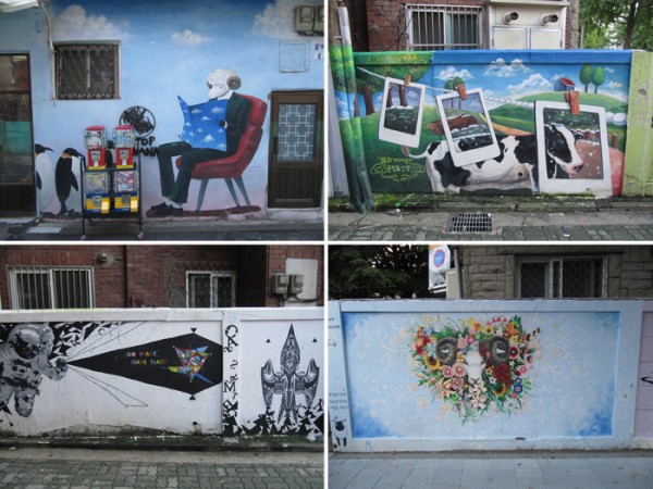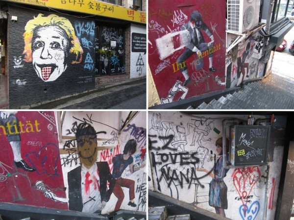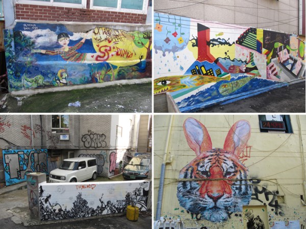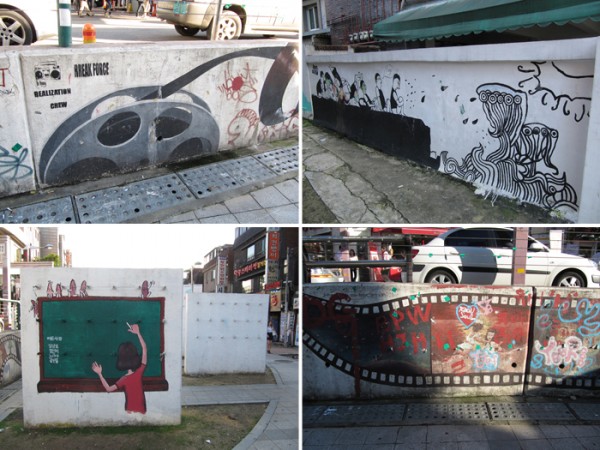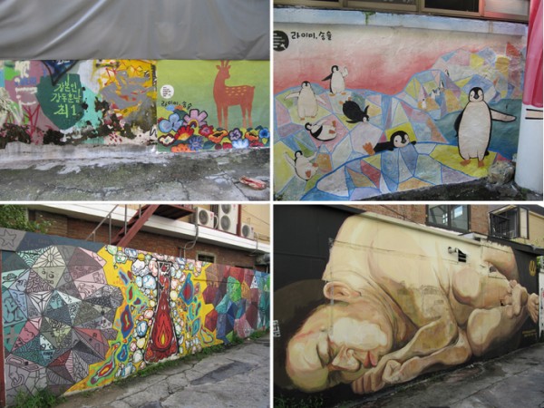 상업적인 그림부터 홍대 미술과 학생들의 거리미술전.. 그리고 그래피티, 온갖 낙서들.