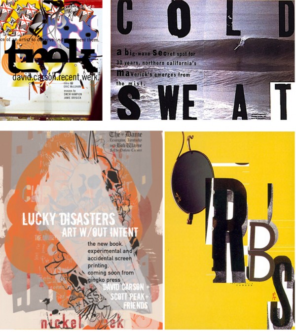 1956년 텍사스에서 태어난 데이비드 카슨(David Carson)은 샌디애고 주립대학에서 사회학을 전공한후 1980년 중학교 사회교사로 재직하다가 27살(미국나이) 늦은 나이에 디자이너로 변신했다.