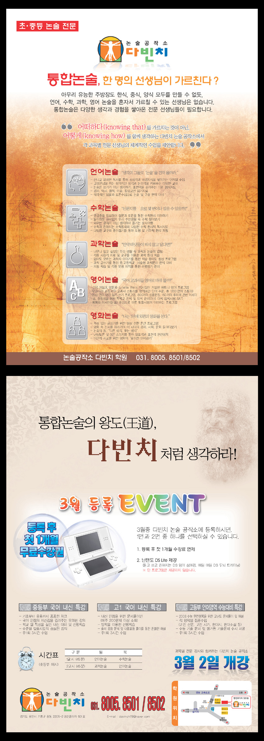 전번에 만지던 논술학원 다빈치의 전단.