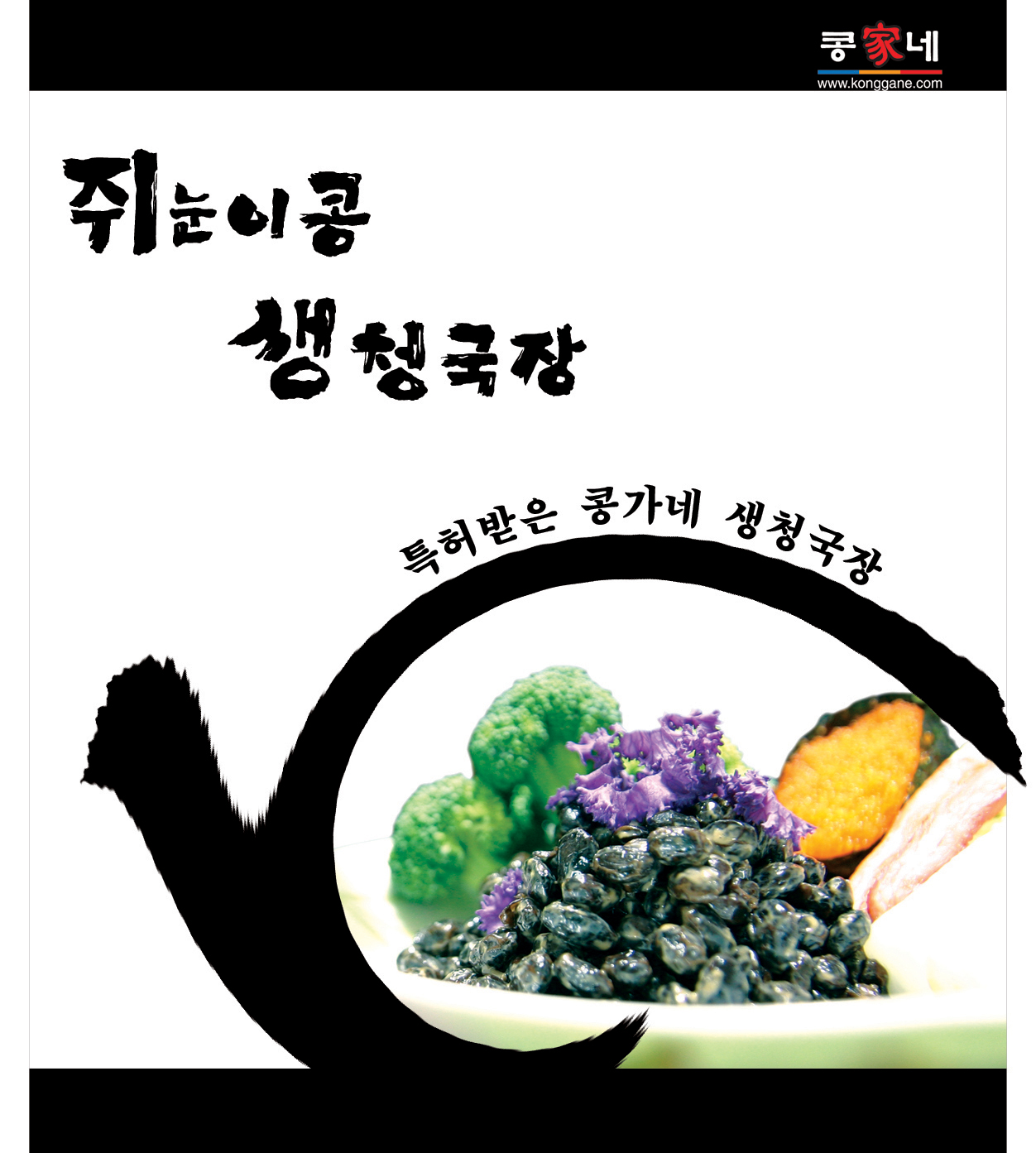 보라+검정컬러보다는 우리가 흔히아는 청국장의 브라운색상을 응용하고 좀더 먹음직스런 청국장비쥬얼은 어떨까요?