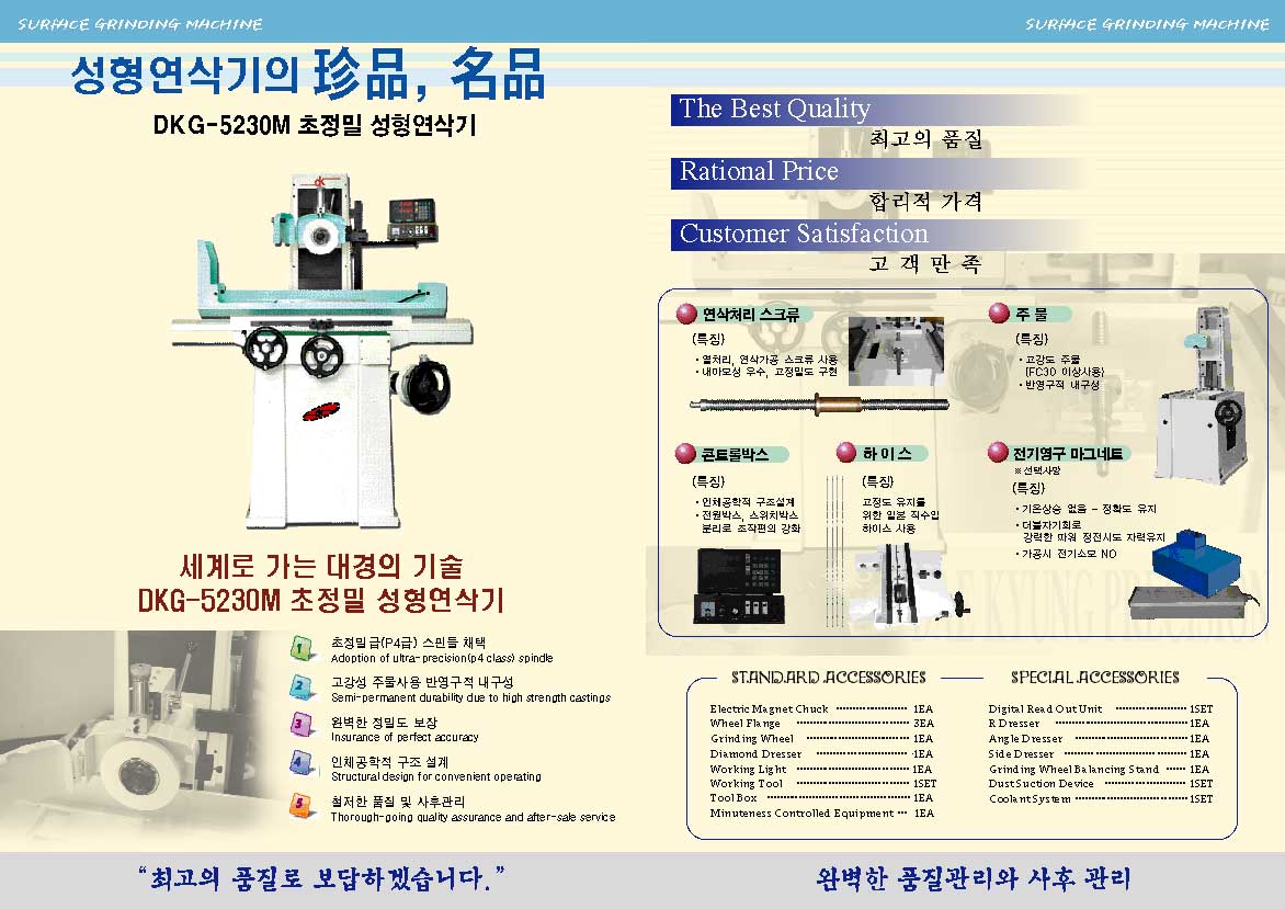 4P짜리 카다록인데 표지에 사진과 안에 사진이 크기도 비슷하고 같은 사진이라 이점이 좀 .... 금속제품들이 잘 성형연삭되어 있는 이미지를 구하셔서 표지에 이미지가 들어가는건 어떨까 싶네요. 예를 들자면 연필깍기를 광고할때 잘 깍여진 연필의 모습을 보면 성능이나 기능등도 쉽게 전달될 수 있는것처럼 그런 사진이 필요할듯 싶네요.