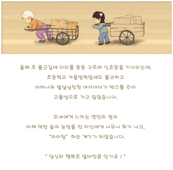 선진국일수록 행복지수가 낮다고해욤.. 상대적으로 비교하기 때문이져.. 저 그림을 보니, 당시상황이 그려지네여.. ㅠ.ㅠ