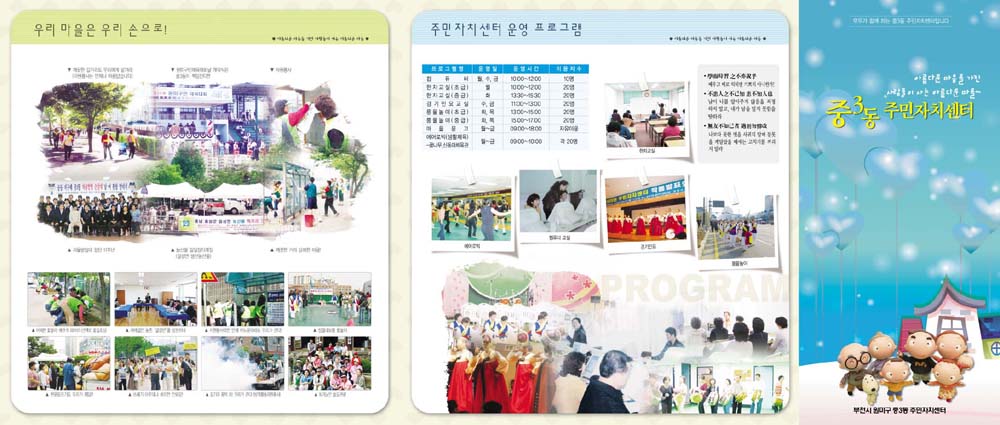 요즘은 동사무소도 참 디자인회사에서 리플렛도 만들고 많이 발전했군요 봄느낌처럼 화사하고 따뜻한거 같아서 보기 좋네요 근데 좀 복잡한거 같아보이는데~