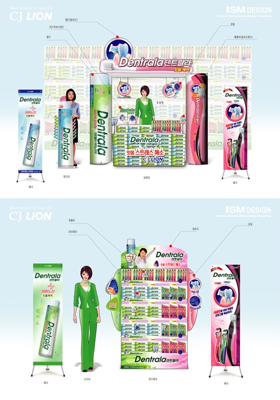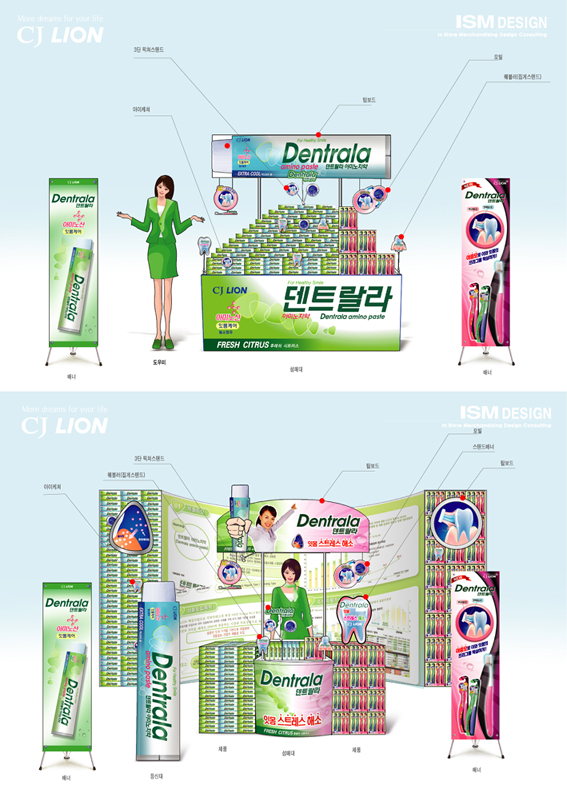 좋은데요~ 매대 앞부분에 치약 패키지 패턴을 너무 남용한듯..하기도하고.. 세번째사진 여인네 머리 윗부분 참 좋네요.. 히^^ 고생무쟈게 많았겠다.. 3D아니어도 좋은데요~