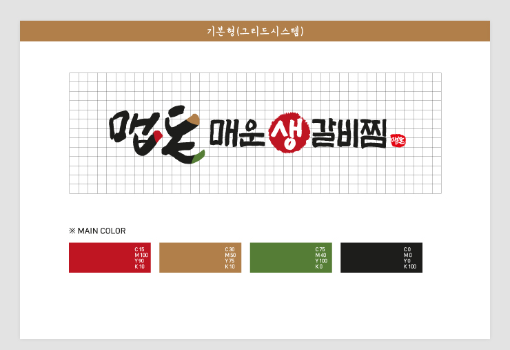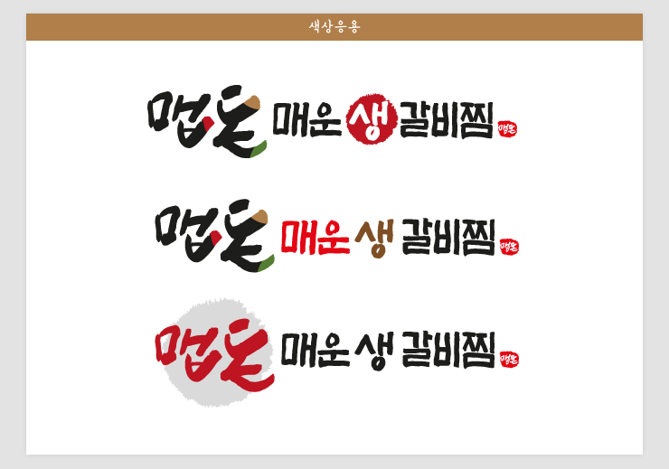 정직한 맛을 자랑하는 맵돈 매운생갈비찜은 반듯하고 든든한 느낌의 글씨체로 표현하여 음식점로고 브램드의 가치를 높였습니다.