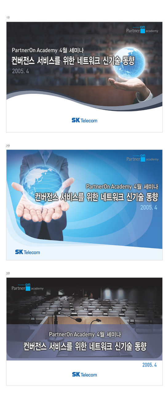 디자인적인 측면으로 봤을땐 당연히 2번안이 났죠 그러나 그쪽에서 세미나 느낌을 강조했다하면 2번안이 나을수도 있겠네여
